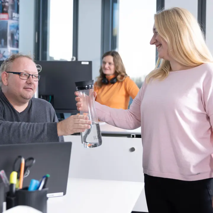Zusammenarbeit und gemeinsame Ziele führen uns zum Erfolg. Wir erweitern unsere Netzwerke, suchen eigenständig die richtigen Ansprechpartner und schaffen Raum für spontanen Austausch. Wir unterstützen einander aktiv, bieten Lösungen an und suchen immer nach neuen Herausforderungen. Dabei begegnen wir uns auf Augenhöhe und vertrauen darauf, dass jede*r ihr oder sein Bestes gibt.